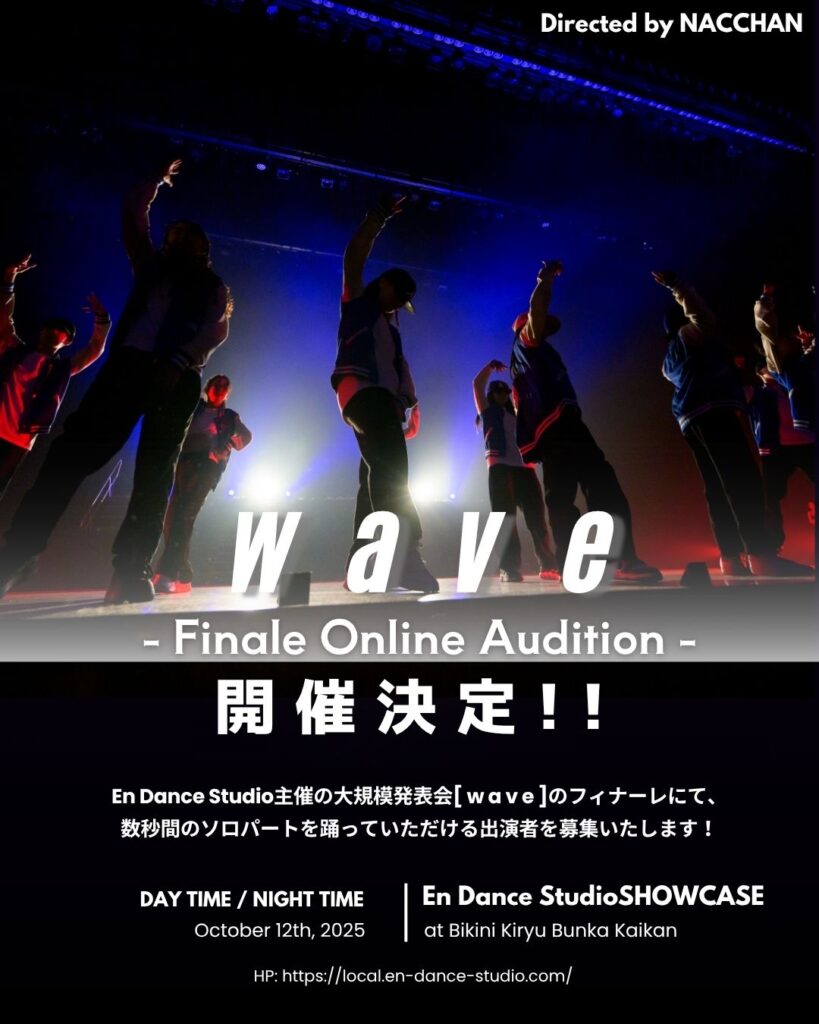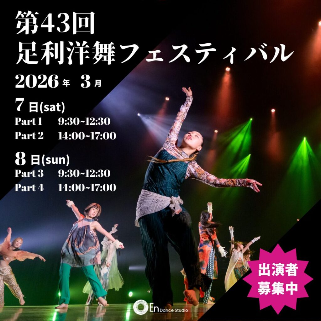 Showcase 2022年8月11日 by endance_gunma_staff Showcase 年に一度の発表会 about_01about_02about_03about_04about_05 クラス一丸となって取り組む年に一度の発表会。 プロの舞台演出・照明によって作り上げられるステージは圧巻! 日頃の練習の成果を披露して、ステージを楽しもう! NEW INFO En 18th Anniversaryにて《 KIDS SHOWCASE 》開催決定! 第43回足利洋舞フェスティバル出演者募集!! En Gunma 大規模発表会 ” w a v e ” 開催決定‼️ En大規模発表会 w a v e 一般自由席販売開始!! En Dance Studio発表会『 w a v e 』FINALE オンラインオーディション En大規模発表会 w a v e 指定席販売開始!! 2025 En大規模発表会 開催決定❗️ En 17th Anniversaryにて《Kids Showcase》開催決定! オオタダンスフェスタ vol.13出演者募集!! 第42回足利洋舞フェスティバル出演者募集!! En 18th Anniversaryにて《 KIDS SHOWCASE 》開催決定! 第43回足利洋舞フェスティバル出演者募集!! En Gunma 大規模発表会 ” w a v e ” 開催決定‼️ En大規模発表会 w a v e 一般自由席販売開始!! En Dance Studio発表会『 w a v e 』FINALE オンラインオーディション